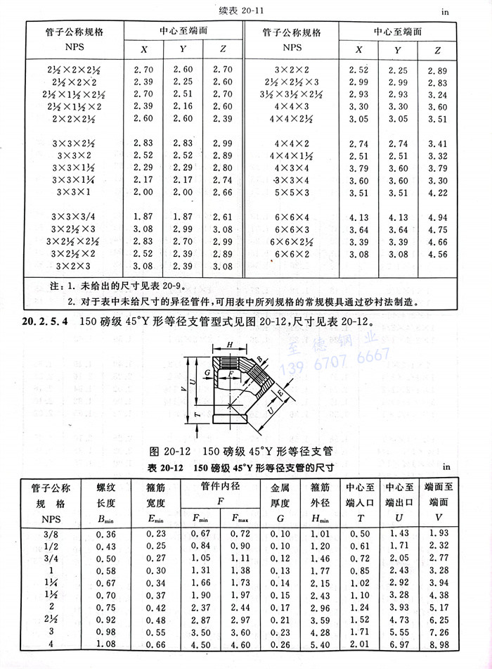 150磅級45°Y形等徑支管(guan)型式(shi)見圖(tu)20-12,尺寸見表20-12。