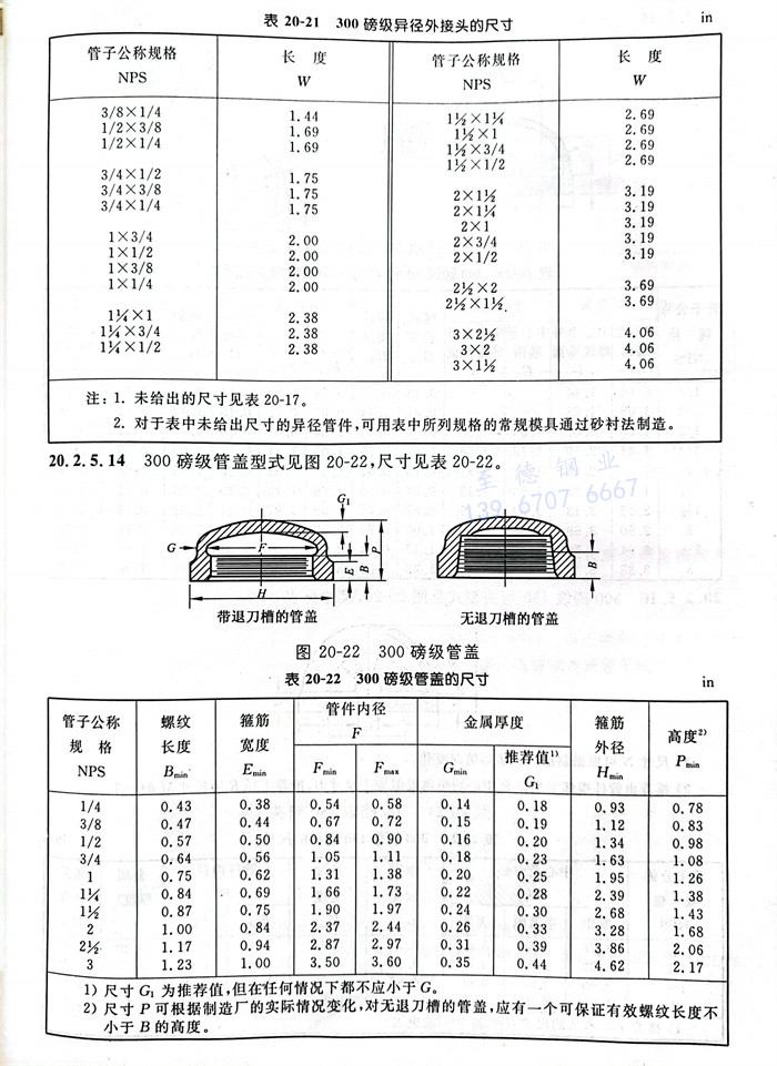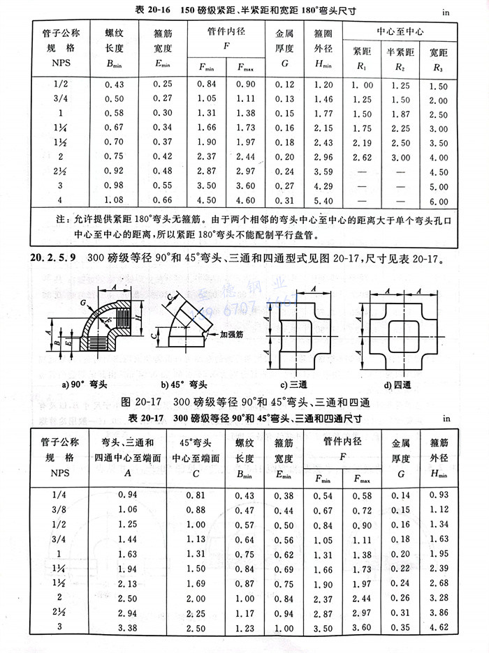 1. 表20-9~表20-24所規定的(de)管件規格是(shi)用相應的(de)管道公稱規格(NPS)來(lai)識別的(de)。