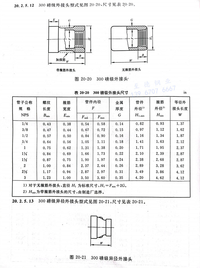 300磅級異徑外接頭型式見(jian)圖(tu)20-21,尺寸見(jian)表20-21。