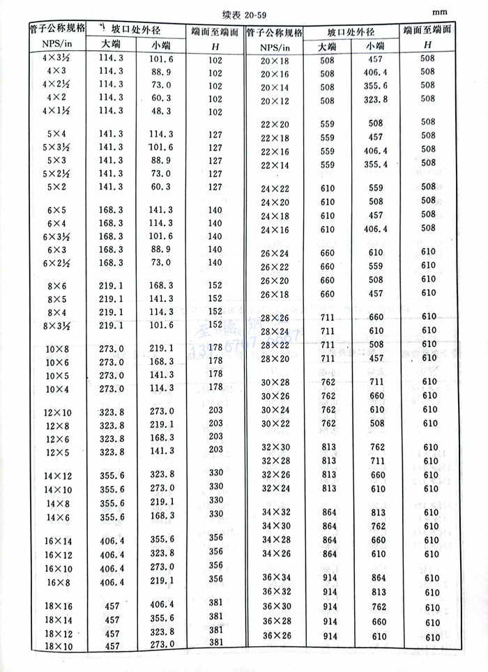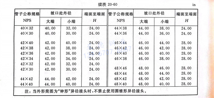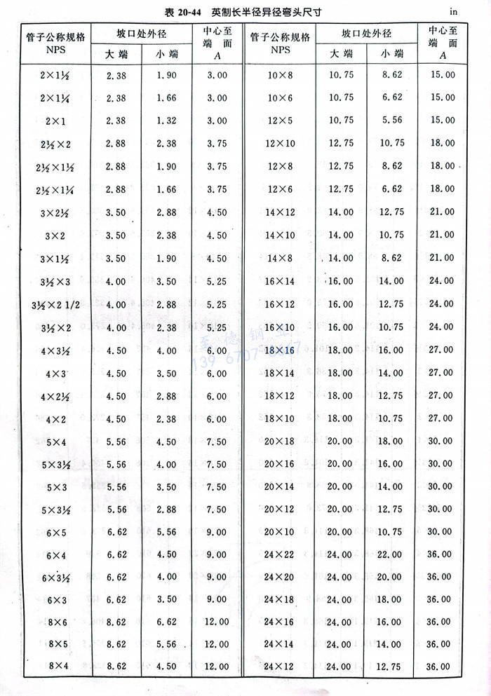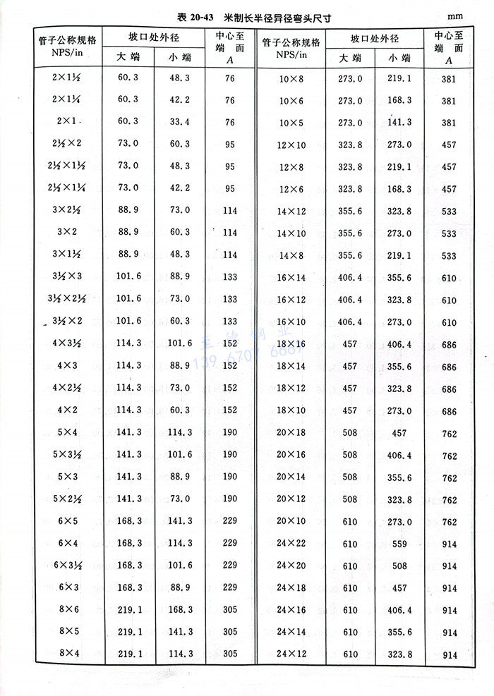 b. 米制(zhi)尺寸(cun)的(de)長(chang)半徑(jing)異徑(jing)彎頭型式(shi)見圖20-34,尺寸(cun)見表20-43;英制(zhi)尺寸(cun)的(de)長(chang)半徑(jing)異徑(jing)彎頭型式(shi)見圖20-34,尺寸(cun)見表20-44。