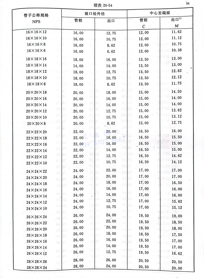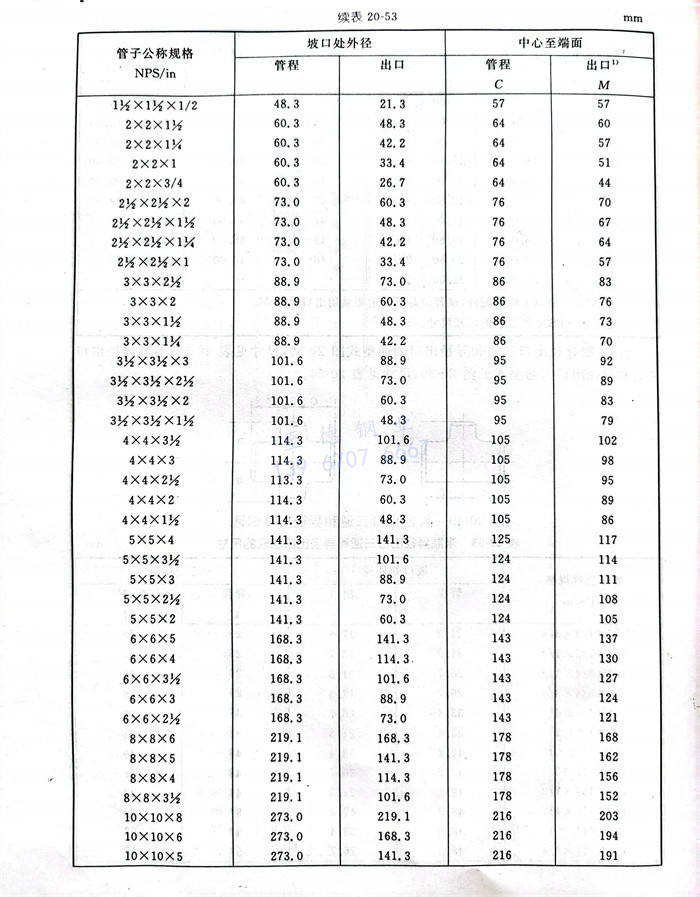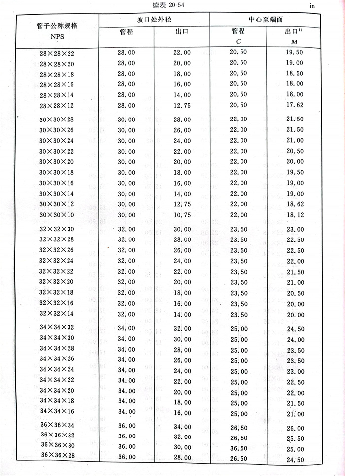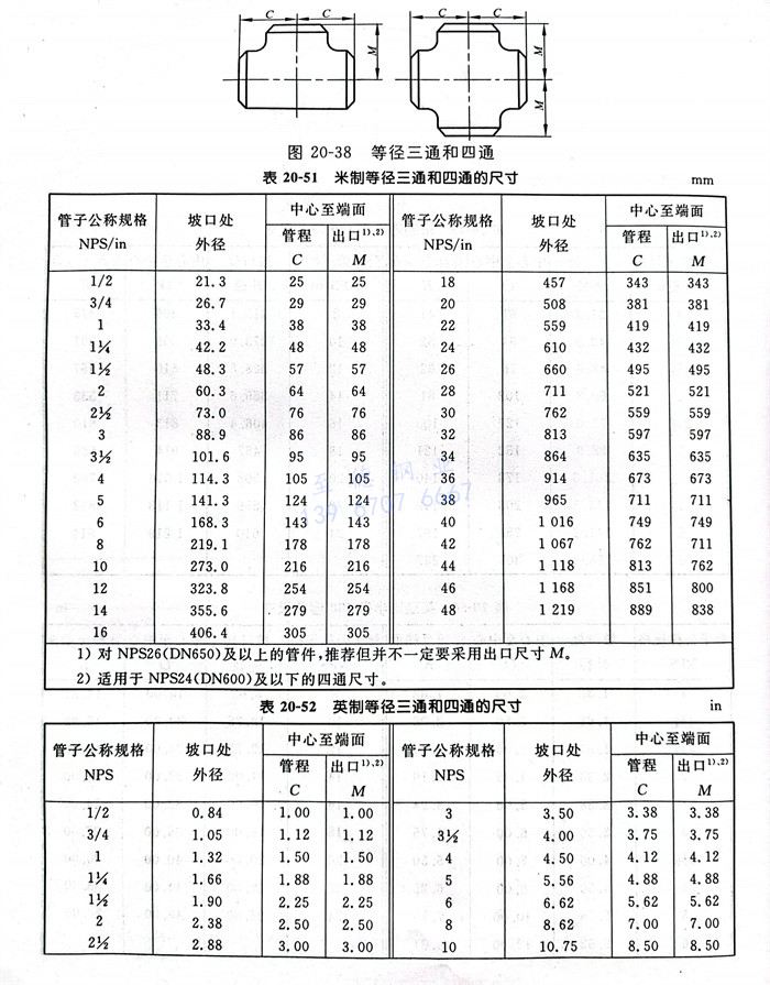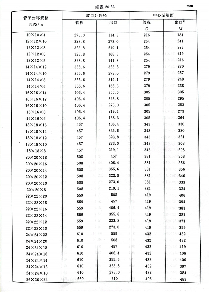f. 米制尺寸(cun)等徑三通和四通型式見(jian)圖20-38,尺寸(cun)見(jian)表(biao)20-51;英制尺寸(cun)等徑三通和四通型式見(jian)圖20-38,尺寸(cun)見(jian)表(biao)20-52。