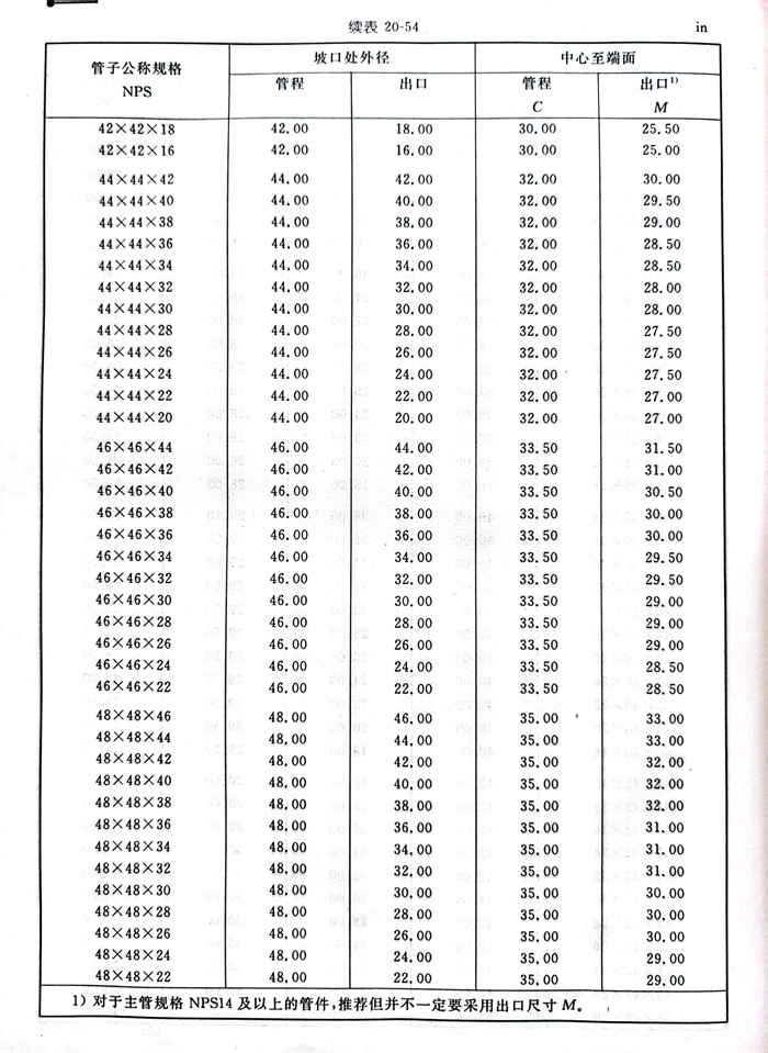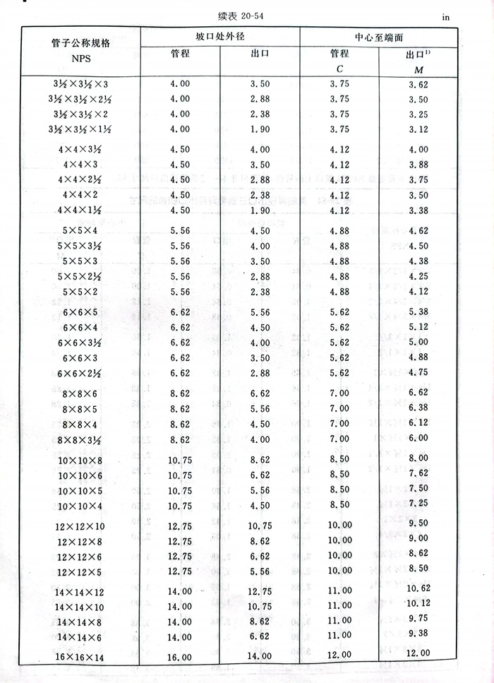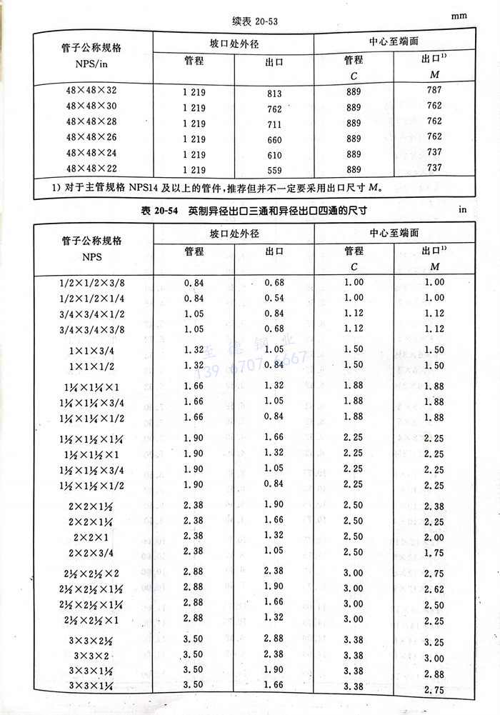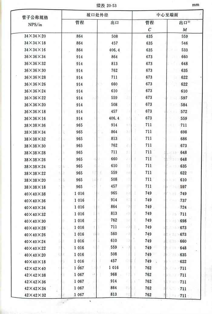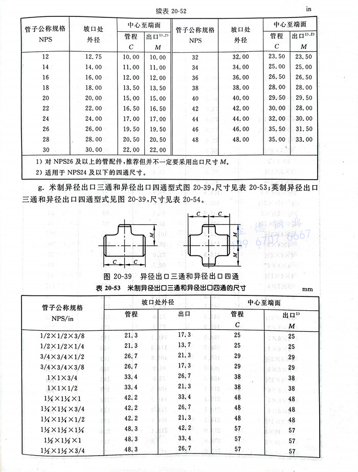 g. 米制尺(chi)寸(cun)(cun)異徑(jing)出口三通(tong)(tong)和(he)異徑(jing)出口四通(tong)(tong)型式見(jian)圖20-39,尺(chi)寸(cun)(cun)見(jian)表(biao)20-53;英(ying)制尺(chi)寸(cun)(cun)異徑(jing)出口三通(tong)(tong)和(he)異徑(jing)出口四通(tong)(tong)型式見(jian)圖20-39,尺(chi)寸(cun)(cun)見(jian)表(biao)20-54。