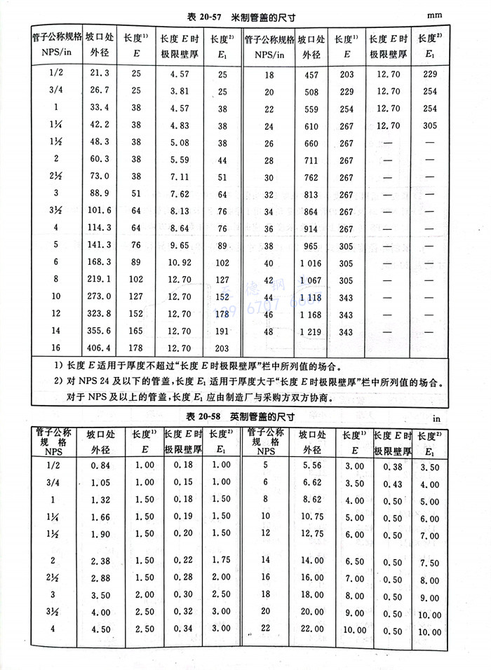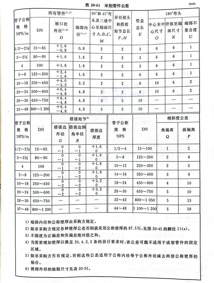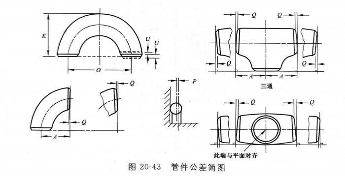 管件(jian)公(gong)(gong)差(cha)有米制(zhi)尺寸公(gong)(gong)差(cha)及英制(zhi)尺寸公(gong)(gong)差(cha)兩種。米制(zhi)管件(jian)公(gong)(gong)差(cha)見圖20-43及表20-61;英制(zhi)管件(jian)公(gong)(gong)差(cha)見圖20-43及表20-62。