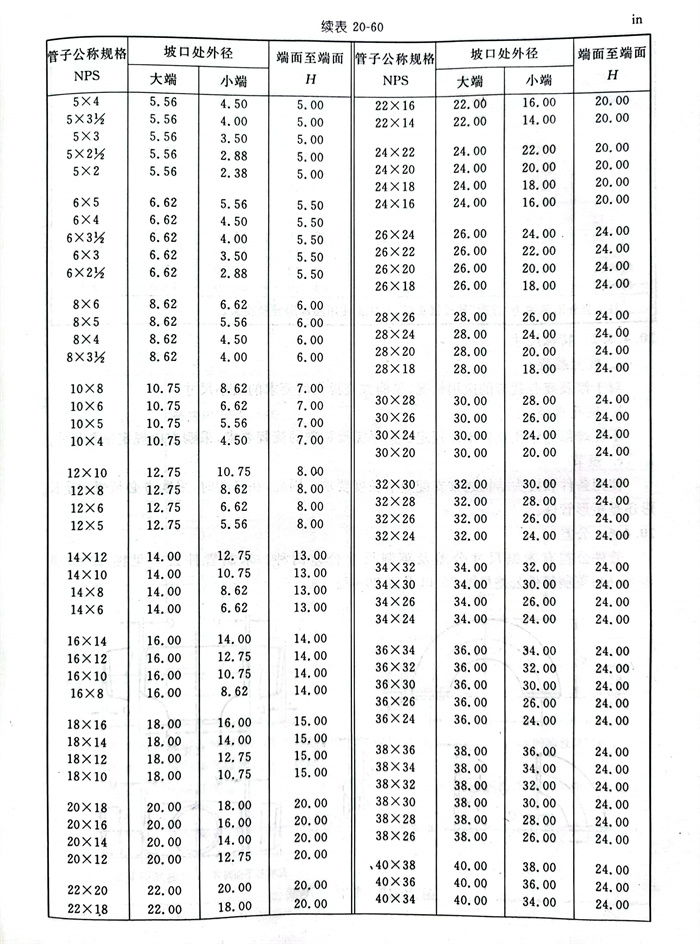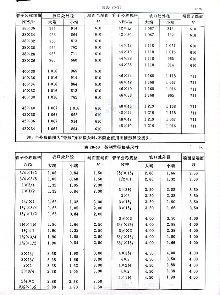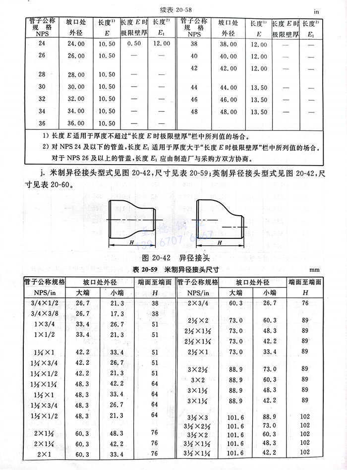 j. 米(mi)制異徑接頭型式見圖20-42,尺寸(cun)見表(biao)20-59;英制異徑接頭見圖20-42,尺寸(cun)見表(biao)20-60。