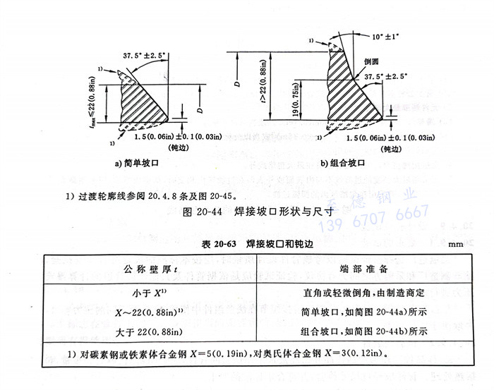 a. 焊(han)接(jie)端部坡(po)口形狀及尺(chi)寸見圖20-44,焊(han)接(jie)坡(po)口和鈍邊見表20-63。