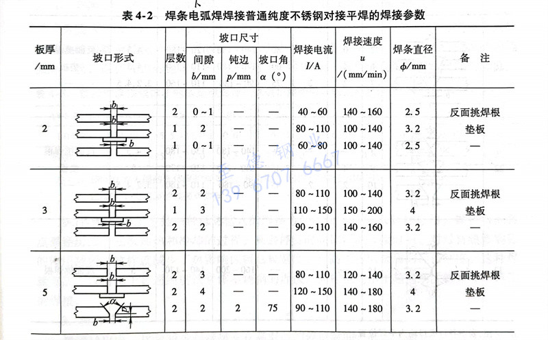 普(pu)通純度鐵素(su)體不(bu)銹鋼管用(yong)焊(han)(han)(han)條電弧焊(han)(han)(han)進(jin)行對接(jie)平(ping)焊(han)(han)(han)時,坡口形式及(ji)焊(han)(han)(han)接(jie)參數(shu)見表4-2。從(cong)表中可(ke)以看出,采用(yong)的(de)是小的(de)熱(re)輸人(ren),目的(de)是抑制(zhi)焊(han)(han)(han)接(jie)區的(de)鐵素(su)體晶粒過分長大。施焊(han)(han)(han)時盡(jin)量(liang)減小焊(han)(han)(han)縫(feng)截面(mian),不(bu)要連續多道(dao)施焊(han)(han)(han),要待前一道(dao)焊(han)(han)(han)縫(feng)冷卻到預熱(re)溫(wen)度時,再焊(han)(han)(han)下一道(dao)焊(han)(han)(han)縫(feng)。