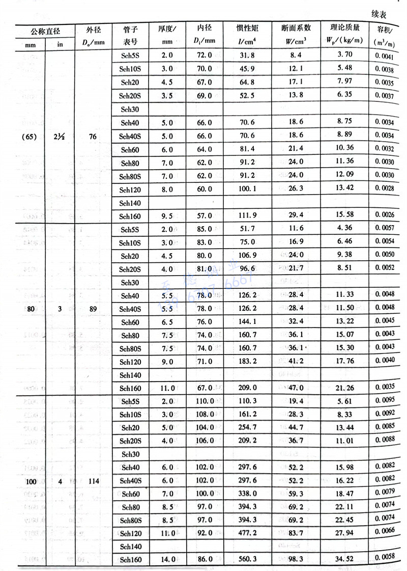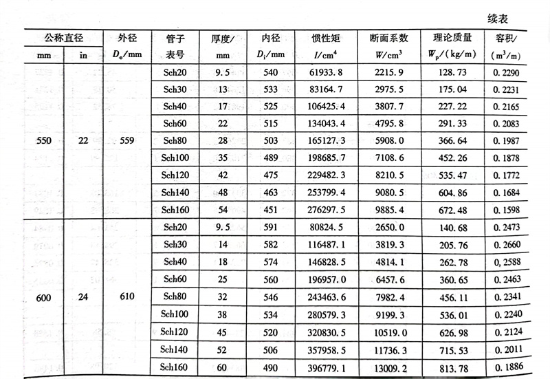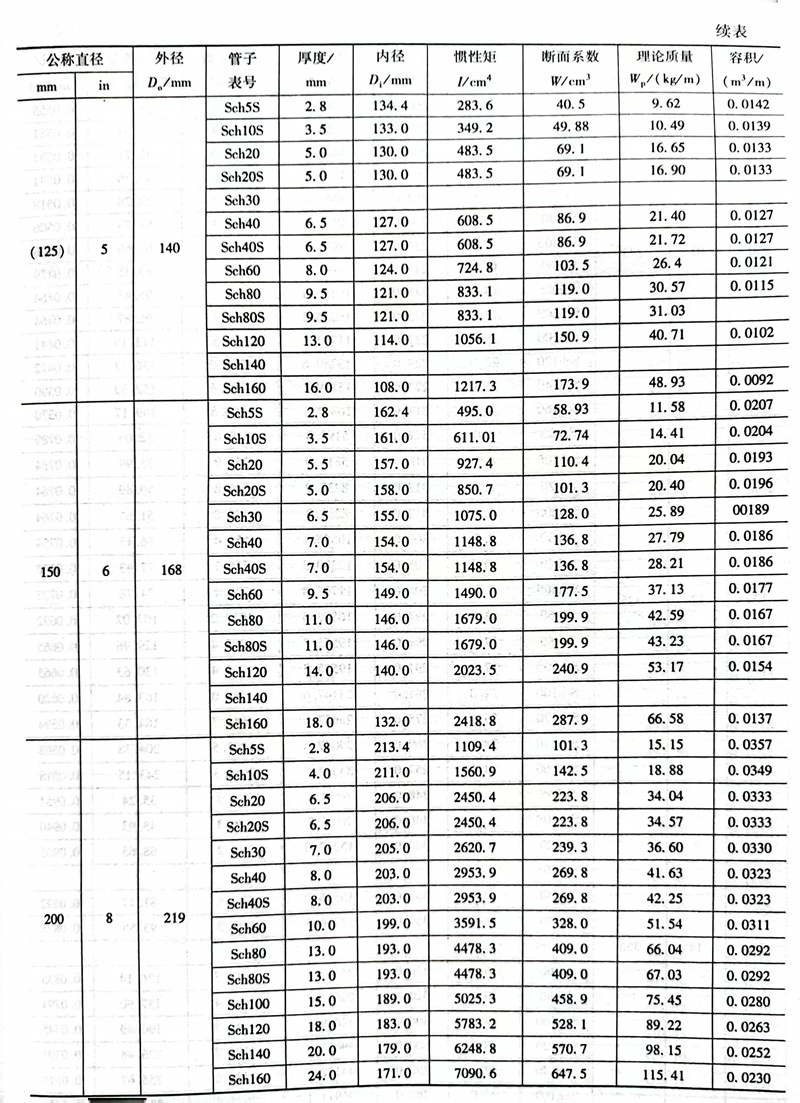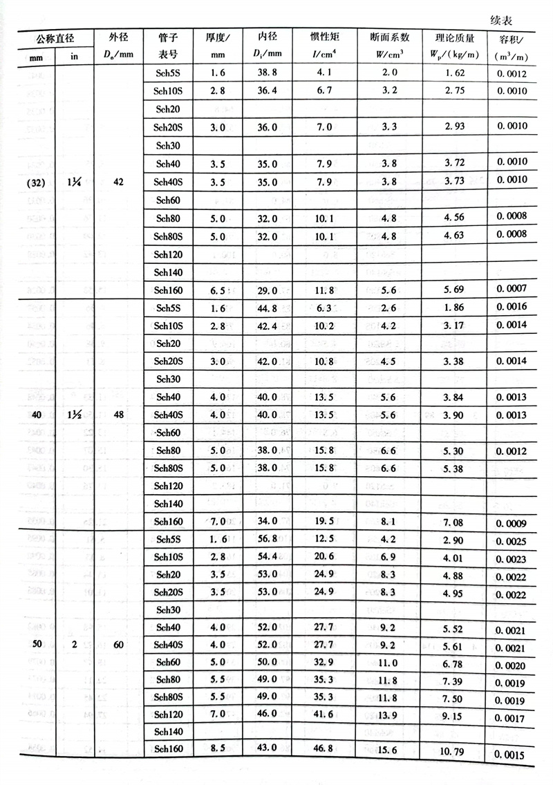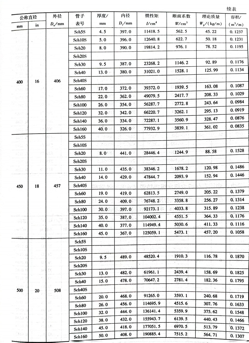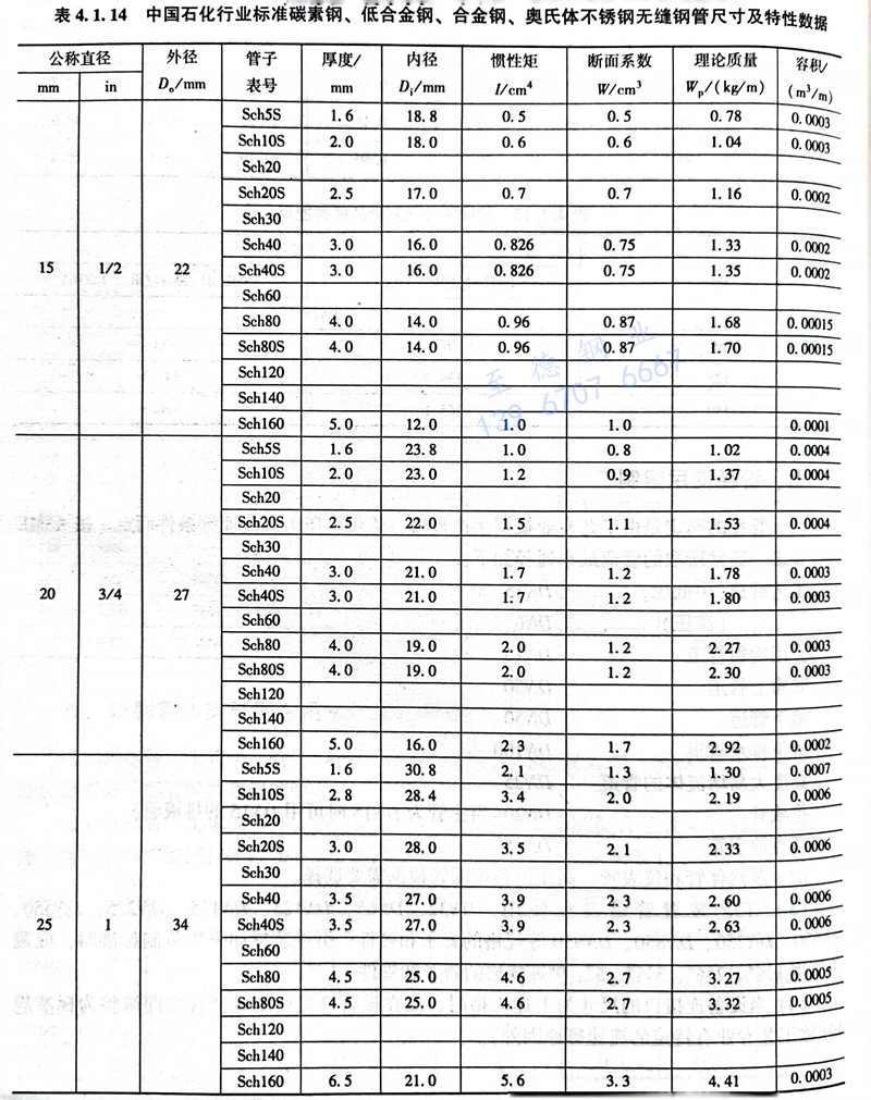 表4.1.14 中國石化行(xing)業標準(zhun)碳(tan)素鋼(gang)、低合金(jin)鋼(gang)、合金(jin)鋼(gang)、奧氏體不銹鋼(gang)無縫鋼(gang)管尺寸(cun)及特性(xing)數據