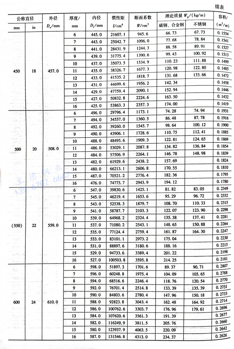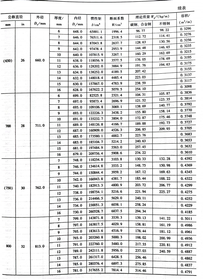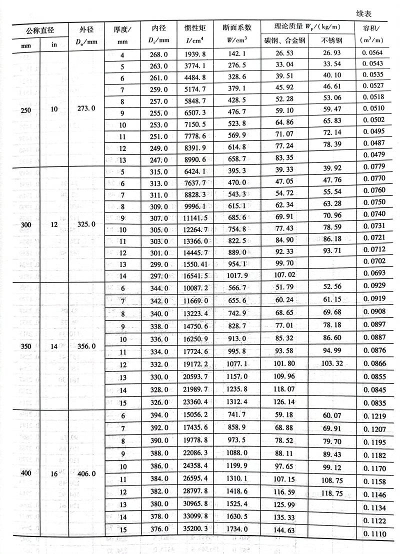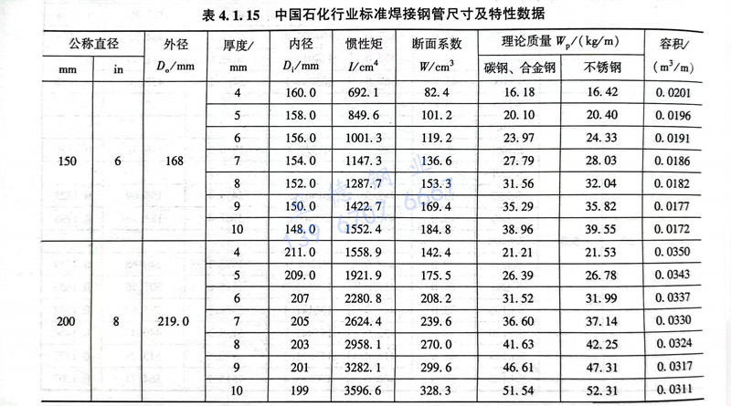 中國石(shi)化行(xing)業標準焊接鋼管尺寸及特性數據見(jian)表(biao) 4.1.15
