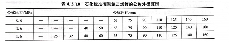 表4.3.10 石化標準(zhun)硬(ying)聚氯乙烯管的公稱外徑范圍