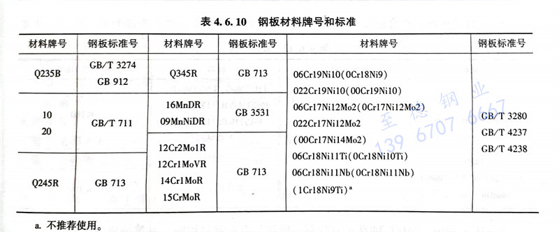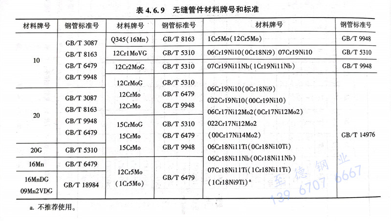 ④. 無(wu)縫管件材料牌(pai)號和標(biao)準號如表(biao)4.6.9所示;制造管帽(mao)的鋼(gang)板材料牌(pai)號、標(biao)準和鋼(gang)板制對管件材料牌(pai)號、標(biao)準如表(biao)4.6.10所示。