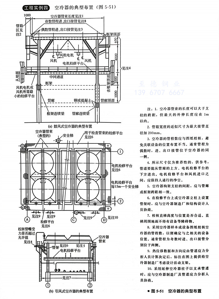 6.在檢修平臺上(shang)或空冷器(qi)立柱上(shang)設置(zhi)管架時(shi),應與空冷器(qi)制造廠和結構設計(ji)人員協商。