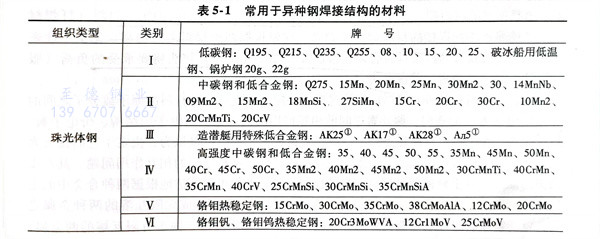 常用于異種鋼焊接結構(gou)的材(cai)料見表5-1。