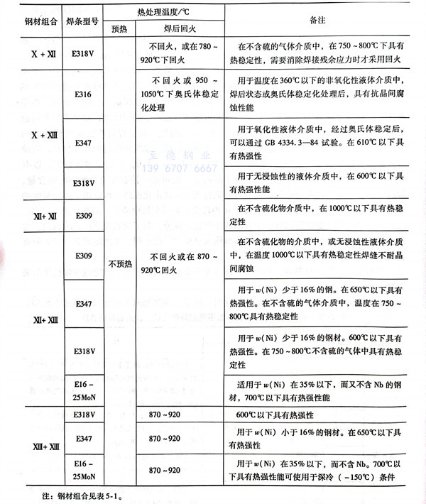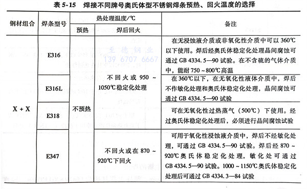 有關不(bu)同(tong)牌號(hao)的奧氏體(ti)型不(bu)銹鋼管焊(han)(han)接(jie)時,焊(han)(han)條(tiao)、預熱和回火溫度(du)的選(xuan)擇見(jian)表5-15。