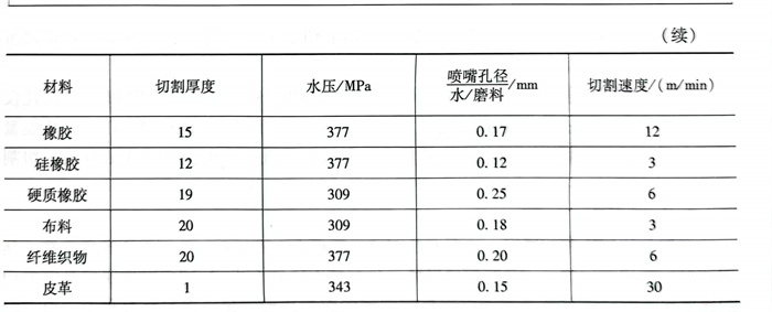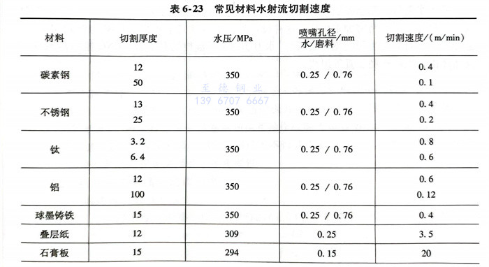 水(shui)射流切(qie)(qie)割(ge)(ge)常用的切(qie)(qie)割(ge)(ge)材料及其切(qie)(qie)割(ge)(ge)工藝(yi)參數見表(biao)6-23。