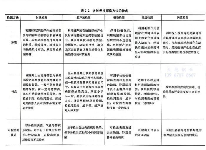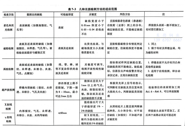 幾種(zhong)無損檢測方法的(de)特點及(ji)應用范圍見表7-2和(he)表7-3。