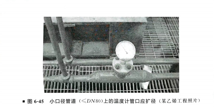⑥. 對于有分支(zhi)的工(gong)藝(yi)(yi)管(guan)(guan)(guan)道,安裝(zhuang)溫度(du)計(ji)或熱電偶時(shi),要特別注意(yi)安裝(zhuang)位置(zhi)與工(gong)藝(yi)(yi)流程相符(fu),且不能安裝(zhuang)在(zai)工(gong)藝(yi)(yi)管(guan)(guan)(guan)道的死角、盲腸位置(zhi)。熱電偶溫度(du)計(ji)接(jie)口應設在(zai)兩個(ge)或兩個(ge)以上(shang)進入流體相遇點的下游至少8倍管(guan)(guan)(guan)徑(jing)(jing)處。但在(zai)8倍管(guan)(guan)(guan)徑(jing)(jing)內允許有安全閥及放空的接(jie)管(guan)(guan)(guan)(圖6-47)。