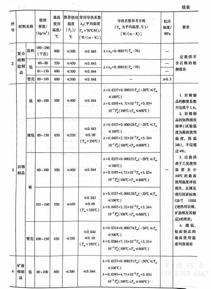 (7)隔熱(re)(re)材(cai)料應(ying)是隔熱(re)(re)性能(neng)好,并有明確(que)的(de)導熱(re)(re)系(xi)數(shu)(shu)(shu)方程(cheng)式或隨溫度變化的(de)導熱(re)(re)系(xi)數(shu)(shu)(shu)圖表。進(jin)行絕(jue)熱(re)(re)計算(suan)時可采用GB 50264《工業設備及管道絕(jue)熱(re)(re)工程(cheng)設計規范》中附錄A常用絕(jue)熱(re)(re)材(cai)料性能(neng)規定的(de)數(shu)(shu)(shu)據。