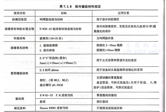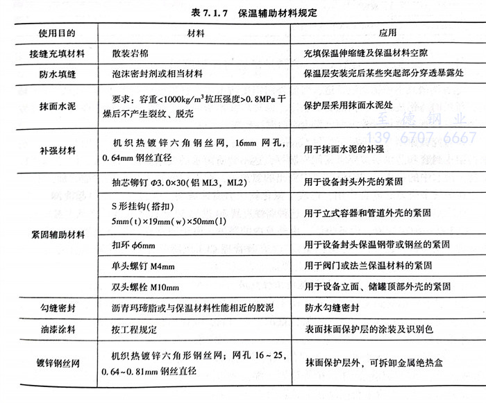 管道配管保溫(wen)輔助(zhu)材(cai)料規定見表7.1.7,保冷輔助(zhu)材(cai)料規定見表7.1.8