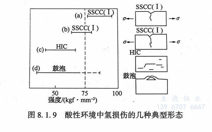 濕H環(huan)境中(zhong)的開裂(lie)(lie)類型有:氫(qing)鼓泡(HB)、氫(qing)致(zhi)開裂(lie)(lie)(HIC)、硫化物應(ying)力腐蝕(shi)開裂(lie)(lie)(SSCC)、應(ying)力導向氫(qing)致(zhi)開裂(lie)(lie)(SOHIC)。見圖8.1.9和圖8.1.10。