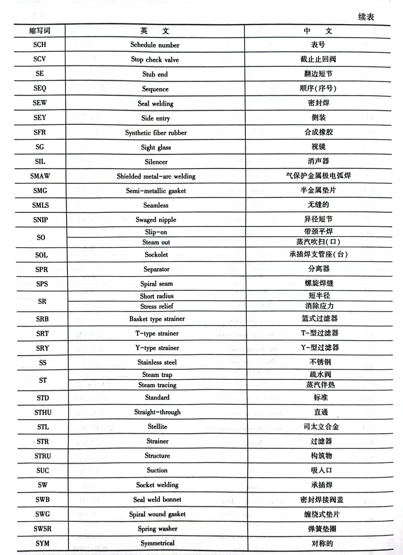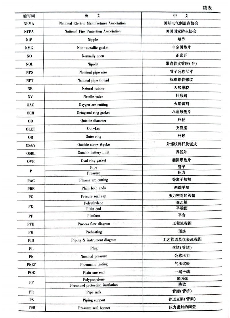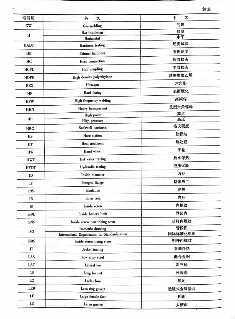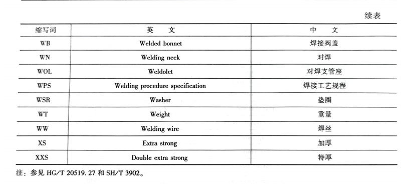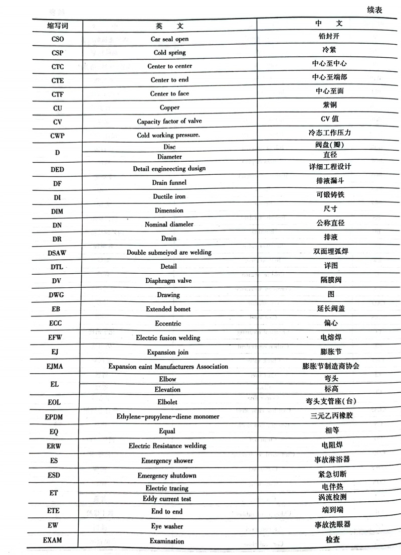 國(guo)內外(wai)管道器材描述常用(yong)縮寫詞中英(ying)文對照表(biao)
