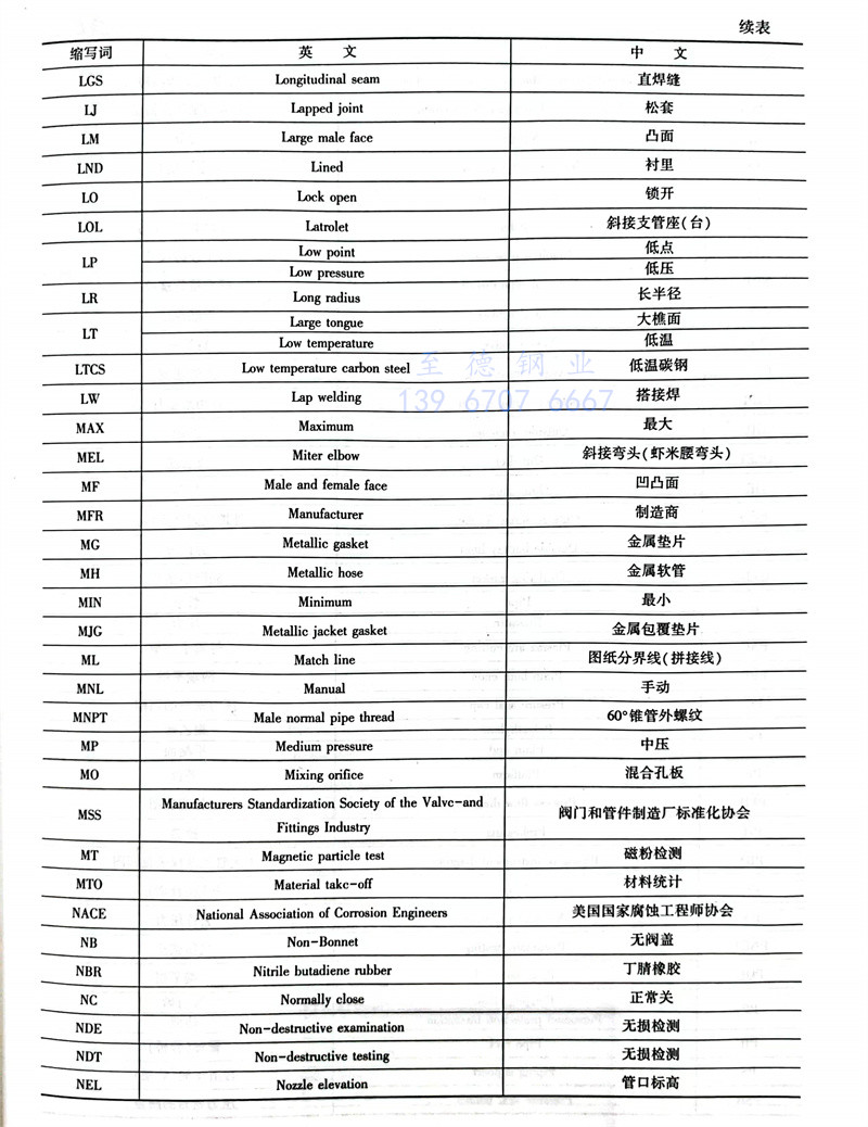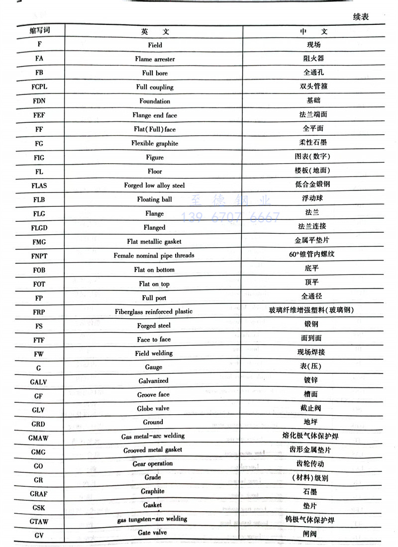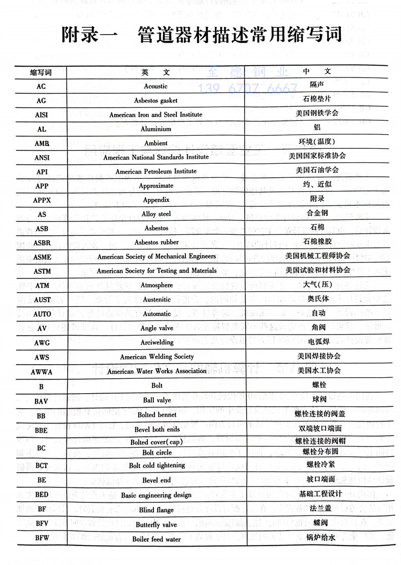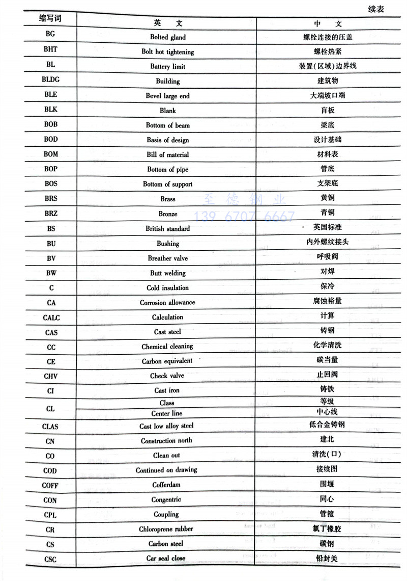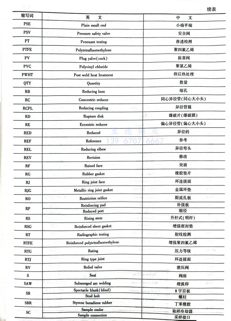 國(guo)內外(wai)管道器材描述常用(yong)縮寫詞中英(ying)文對照表(biao)