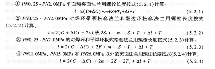 ⑤. PN11.0MPa、PN.0MPa和26.0MPa的突面(mian)法(fa)蘭用螺柱長度按式(5.2.5)計算: