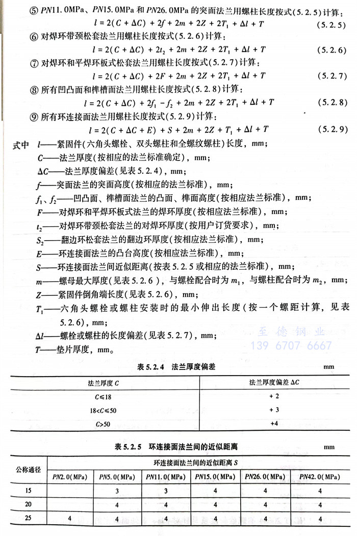④. PN15.0MPa和PN26.0MPa以外(wai)的突面(mian)法(fa)蘭用螺柱(zhu)長度按式5.2.4)計(ji)算(suan)。