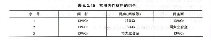 常用閥門(men)內(nei)件材料的組合(he)見表 6.2.10
