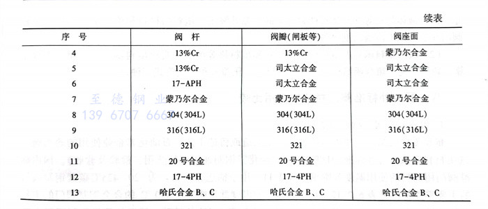 閥門內(nei)件常用的材質及使用溫(wen)度見表(biao)6.2.8。