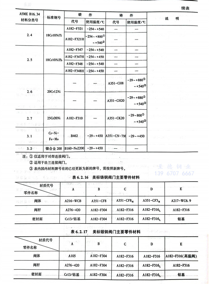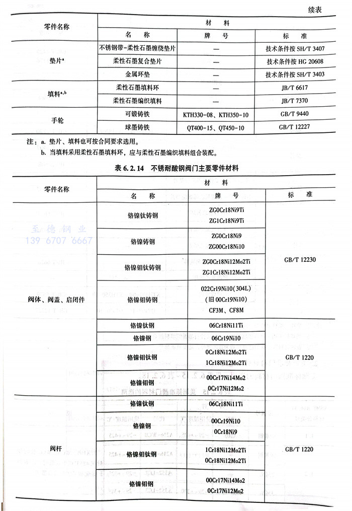 美洲標準閥門(men)材料的選用見表(biao) 6.2.15~表(biao) 6.2.18