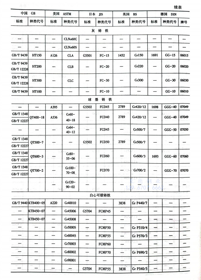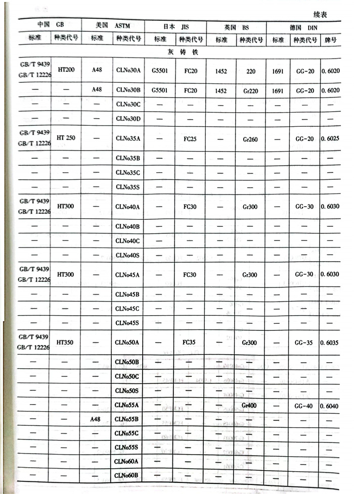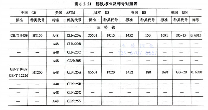 1. 鑄鐵標準及牌(pai)號(hao)對照見表6.2.21。