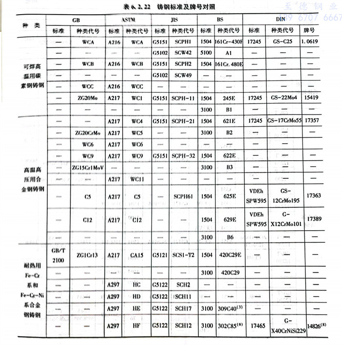 2. 鑄鋼標(biao)準及牌號對照見表6.2.22。