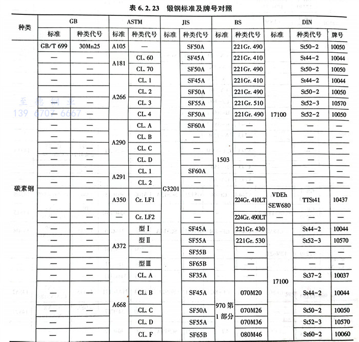 3. 鍛鋼標(biao)準及牌號(hao)對照見表6.2.23。