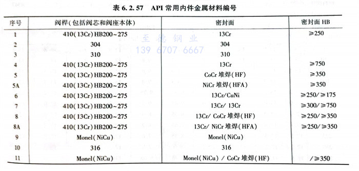 3. API 常(chang)用內件(jian)金屬材料編號見表6.2.57。