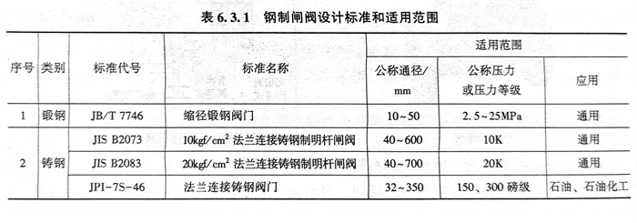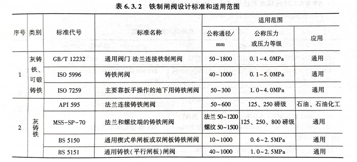 2. 鐵制閘閥設(she)計標準和適用(yong)范圍,見(jian)表(biao)6.3.2。
