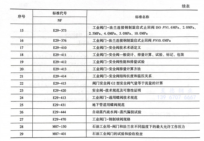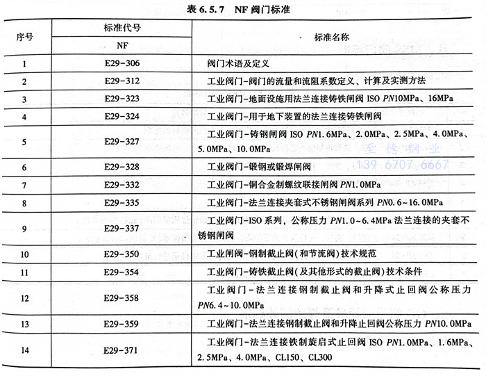 法國 NF 閥門(men)標準見(jian)表6.5.7。