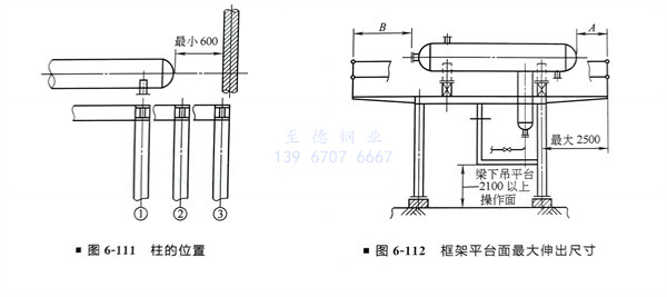 ③. 框架平臺面最(zui)大伸出(chu)尺寸(cun)為2500mm,以此(ci)保證圖6-112中(zhong)的(de)A、B尺寸(cun)。