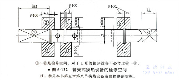 d. 對(dui)于大口徑固定不銹鋼管板式換(huan)熱器(qi),應考慮其上下封頭(管箱)拆卸所需空(kong)(kong)間(jian)和(he)吊裝設(she)施操作空(kong)(kong)間(jian)。