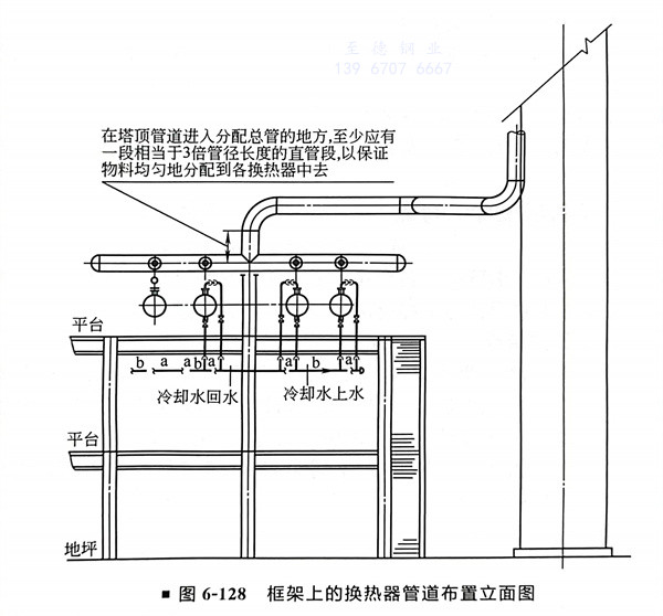 ?. 在框架上不銹(xiu)鋼換(huan)熱器的管道布置如下(圖6-127、圖6-128)。
