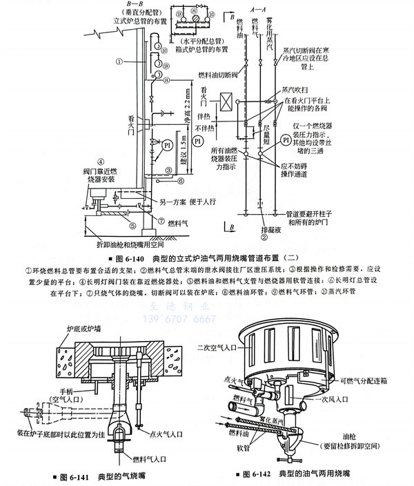 典型(xing)(xing)的立(li)式(shi)爐油氣兩(liang)用燒(shao)嘴管道(dao)布置如(ru)圖6-139、圖6-140所(suo)(suo)示(shi)。典型(xing)(xing)的氣燒(shao)嘴如(ru)圖6-141所(suo)(suo)示(shi)。典型(xing)(xing)的油氣兩(liang)用燒(shao)嘴如(ru)圖6-142所(suo)(suo)示(shi)。