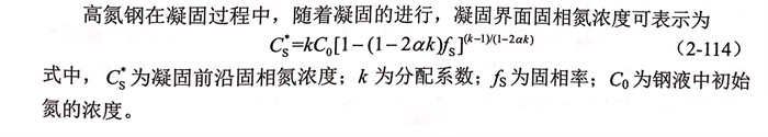 高氮(dan)鋼在凝固(gu)(gu)過程中,隨著凝固(gu)(gu)的進行,凝固(gu)(gu)界面固(gu)(gu)相氮(dan)濃度可表示為(wei)