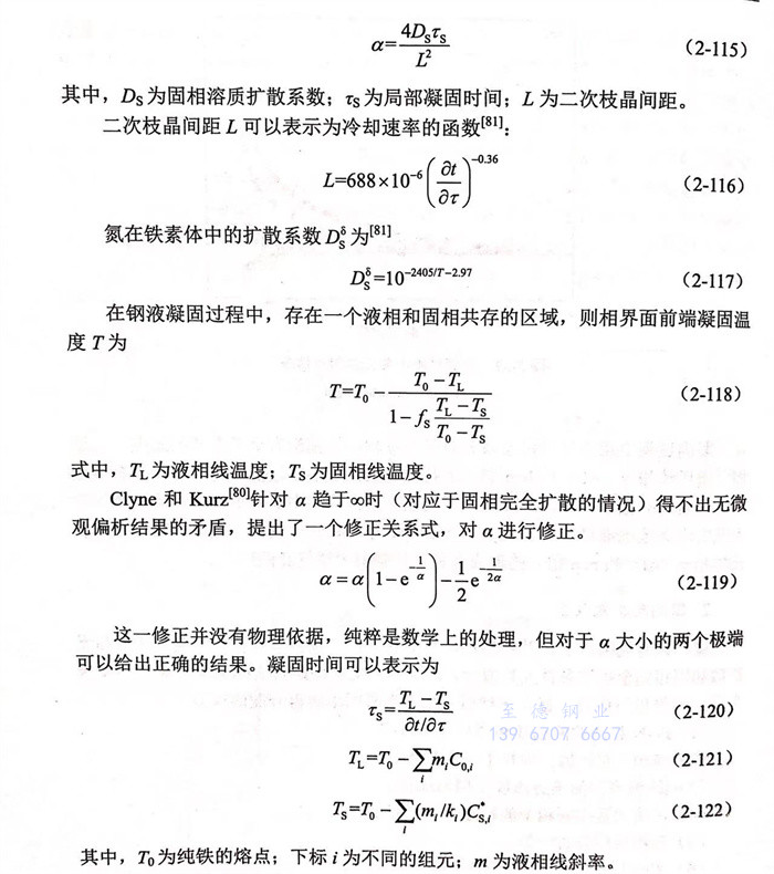分配(pei)(pei)系(xi)數(shu)(shu)的(de)(de)(de)(de)(de)表達式是(shi)(shi)k=Cs/C,是(shi)(shi)凝(ning)固(gu)過程中(zhong)(zhong)固(gu)相(xiang)(xiang)(xiang)濃度(du)與液相(xiang)(xiang)(xiang)濃度(du)的(de)(de)(de)(de)(de)比值。它(ta)是(shi)(shi)表征元素(su)(su)是(shi)(shi)否易偏(pian)析(xi)(xi)的(de)(de)(de)(de)(de)參數(shu)(shu)。碳、硫、磷(lin)等都是(shi)(shi)非常(chang)容(rong)易偏(pian)析(xi)(xi)的(de)(de)(de)(de)(de)元素(su)(su),且這些元素(su)(su)在(zai)(zai)不(bu)同的(de)(de)(de)(de)(de)固(gu)相(xiang)(xiang)(xiang)(如8-Fe相(xiang)(xiang)(xiang)、奧(ao)氏(shi)(shi)體(ti)相(xiang)(xiang)(xiang))中(zhong)(zhong)偏(pian)析(xi)(xi)系(xi)數(shu)(shu)是(shi)(shi)不(bu)同的(de)(de)(de)(de)(de)。對于要研究的(de)(de)(de)(de)(de)氮(dan)元素(su)(su),它(ta)在(zai)(zai)奧(ao)氏(shi)(shi)體(ti)中(zhong)(zhong)的(de)(de)(de)(de)(de)偏(pian)析(xi)(xi)系(xi)數(shu)(shu)要大于在(zai)(zai)鐵素(su)(su)體(ti)中(zhong)(zhong)的(de)(de)(de)(de)(de)偏(pian)析(xi)(xi)系(xi)數(shu)(shu),氮(dan)在(zai)(zai)鐵素(su)(su)體(ti)中(zhong)(zhong)的(de)(de)(de)(de)(de)分配(pei)(pei)系(xi)數(shu)(shu)一般取0.38,在(zai)(zai)奧(ao)氏(shi)(shi)體(ti)中(zhong)(zhong)的(de)(de)(de)(de)(de)分配(pei)(pei)系(xi)數(shu)(shu)一般取0.48,分配(pei)(pei)系(xi)數(shu)(shu)越(yue)小(xiao),偏(pian)析(xi)(xi)程度(du)越(yue)嚴重。另外,分配(pei)(pei)系(xi)數(shu)(shu)還與凝(ning)固(gu)條件(如凝(ning)固(gu)速(su)率、擴散邊界層厚度(du))等相(xiang)(xiang)(xiang)關。