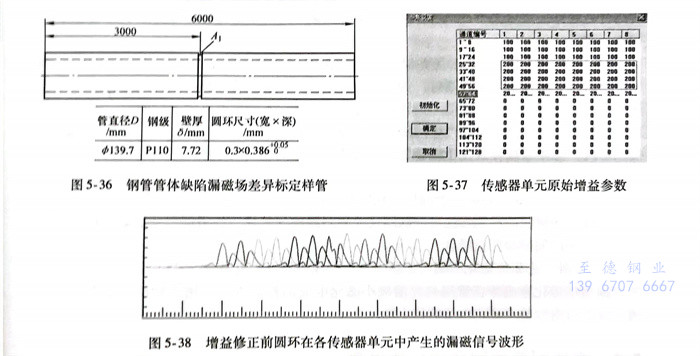 在基于(yu)陣列傳(chuan)感(gan)(gan)(gan)單(dan)(dan)元增益(yi)修(xiu)正的(de)(de)(de)管體漏磁(ci)(ci)場差(cha)異(yi)(yi)消(xiao)除方法中,刻制有(you)(you)標定(ding)(ding)(ding)圓環(huan)的(de)(de)(de)鋼(gang)管以穩定(ding)(ding)(ding)速度通過檢測(ce)探(tan)頭時,標定(ding)(ding)(ding)信號源具有(you)(you)單(dan)(dan)一性(xing)(xing)并(bing)能夠一次性(xing)(xing)遍(bian)歷(li)每個傳(chuan)感(gan)(gan)(gan)器(qi)(qi)(qi)單(dan)(dan)元。由于(yu)感(gan)(gan)(gan)生(sheng)(sheng)(sheng)渦流(liu)磁(ci)(ci)場的(de)(de)(de)作(zuo)用(yong)使得管體形成(cheng)了非均勻的(de)(de)(de)磁(ci)(ci)感(gan)(gan)(gan)應強度,從而導致圓環(huan)在經過不(bu)同傳(chuan)感(gan)(gan)(gan)器(qi)(qi)(qi)單(dan)(dan)元時產生(sheng)(sheng)(sheng)的(de)(de)(de)漏磁(ci)(ci)信號幅(fu)值存(cun)在差(cha)異(yi)(yi)。在對自(zi)然管進行檢測(ce)之前,先利用(yong)帶(dai)有(you)(you)標定(ding)(ding)(ding)圓環(huan)的(de)(de)(de)樣(yang)管對傳(chuan)感(gan)(gan)(gan)器(qi)(qi)(qi)單(dan)(dan)元增益(yi)進行修(xiu)正,并(bing)且必須保證鋼(gang)管檢測(ce)速度與(yu)標定(ding)(ding)(ding)速度相同。最終(zhong),采用(yong)標定(ding)(ding)(ding)圓環(huan)作(zuo)為勵磁(ci)(ci)源來(lai)修(xiu)正傳(chuan)感(gan)(gan)(gan)器(qi)(qi)(qi)單(dan)(dan)元的(de)(de)(de)增益(yi),可有(you)(you)效消(xiao)除同尺(chi)寸缺陷(xian)在管體不(bu)同位(wei)置(zhi)處(chu)產生(sheng)(sheng)(sheng)的(de)(de)(de)檢測(ce)信號差(cha)異(yi)(yi)。