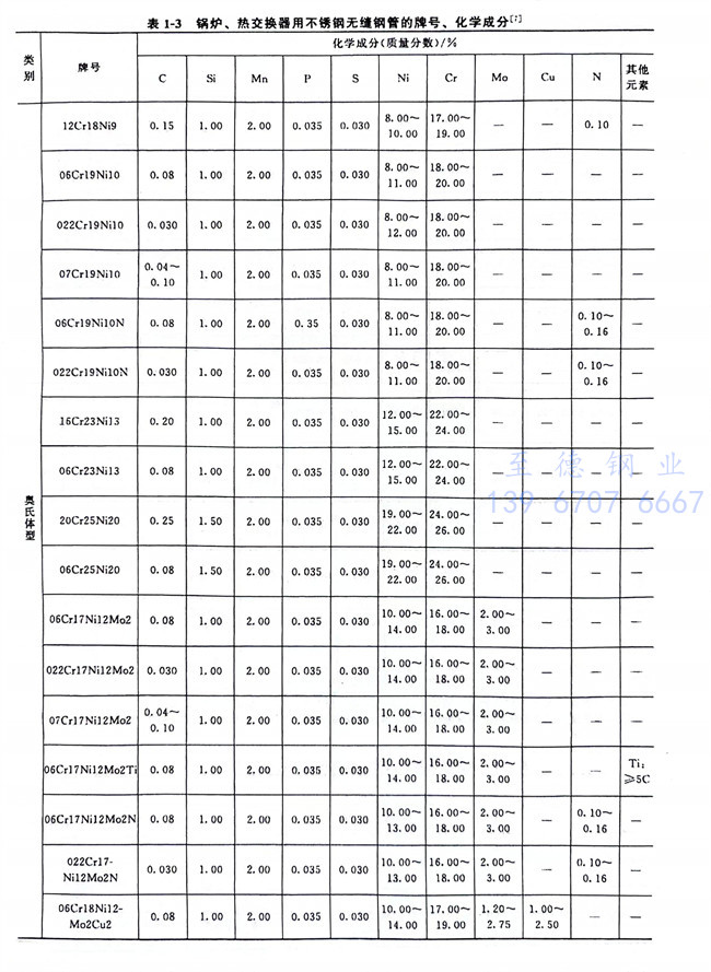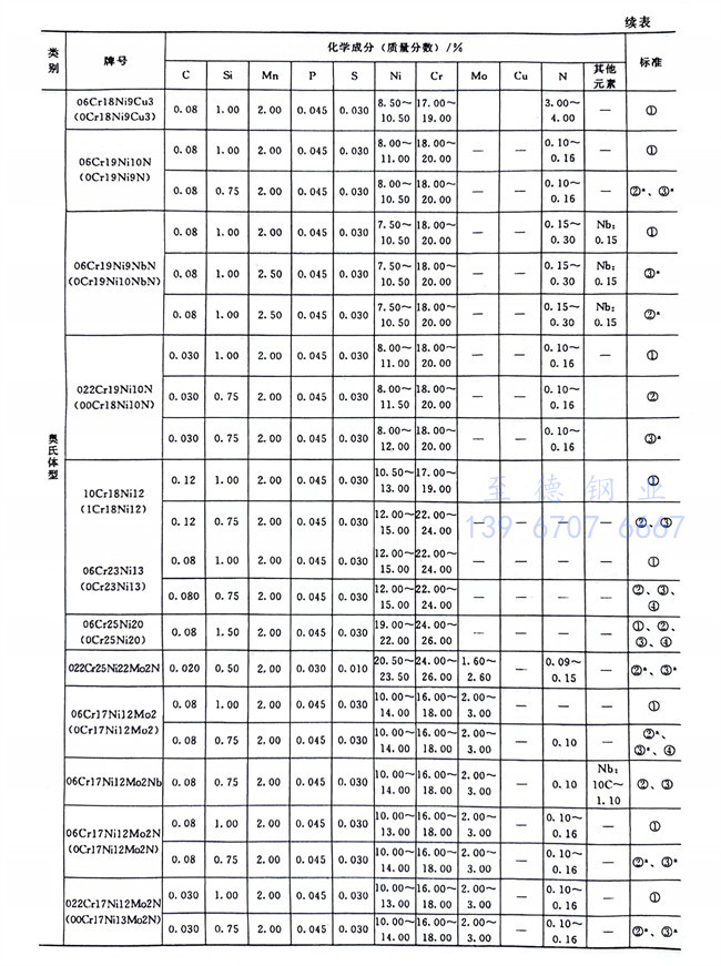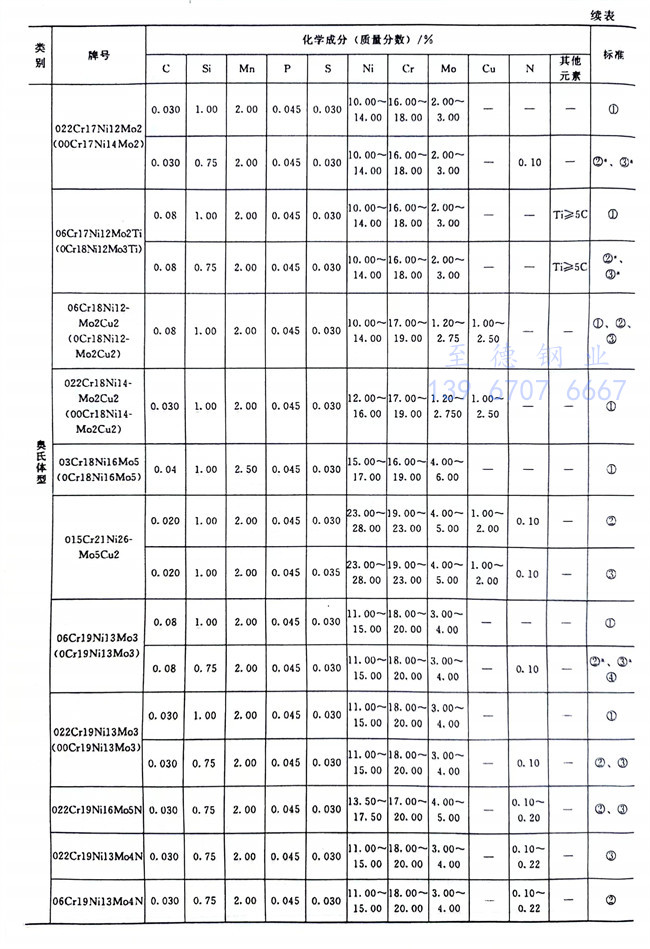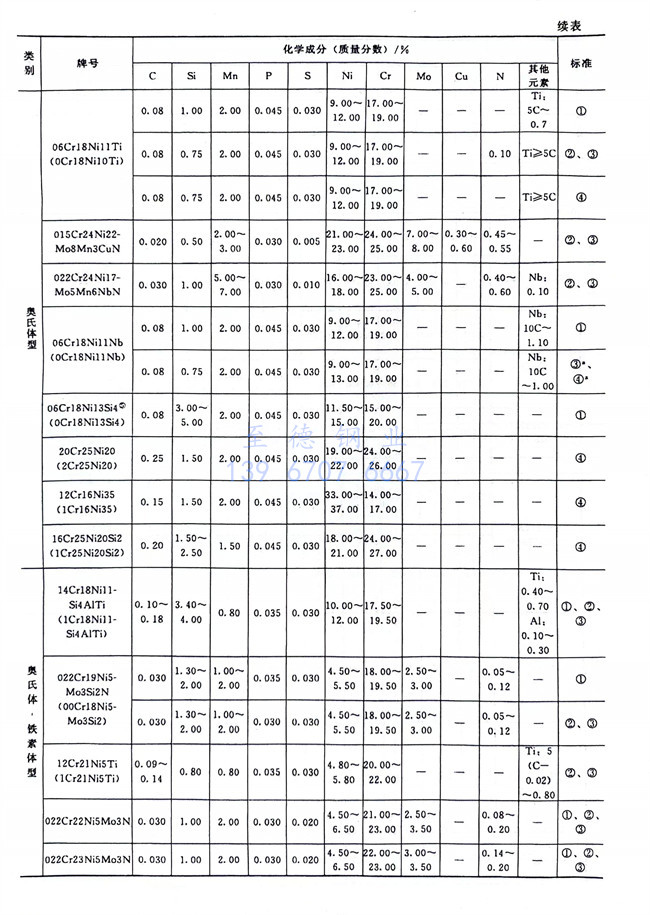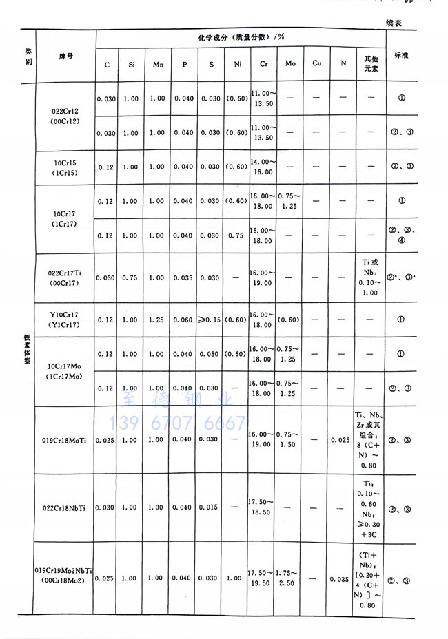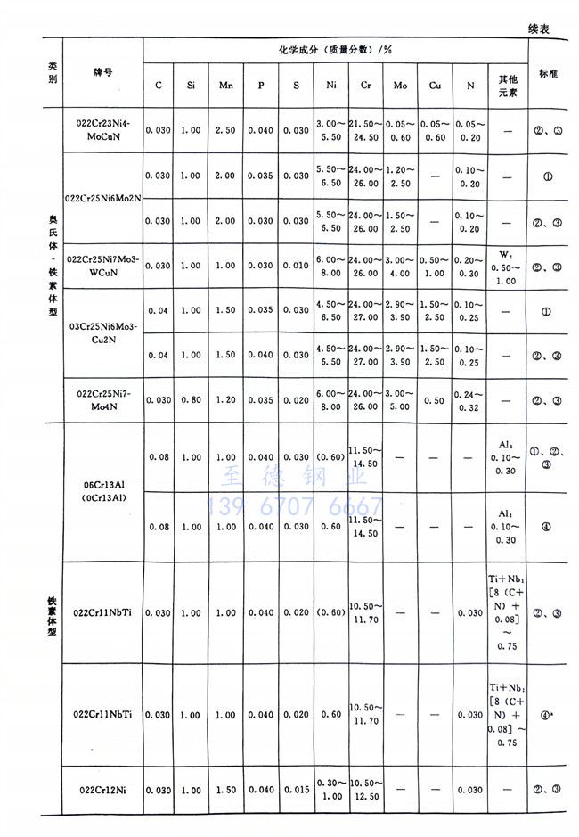 從表1-1~表1-6、表1-8可以看到,不銹鋼和耐熱(re)鋼相互之間的許多牌號的化學成分、力學性能等是相同的,這些牌號的材料既可作為不銹鋼使用,也可作為耐熱鋼使用。