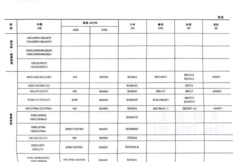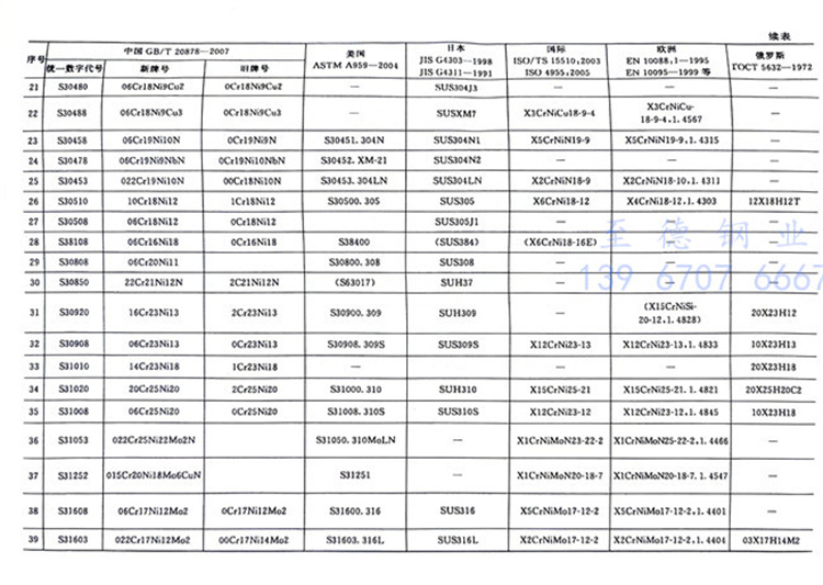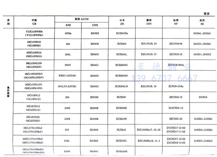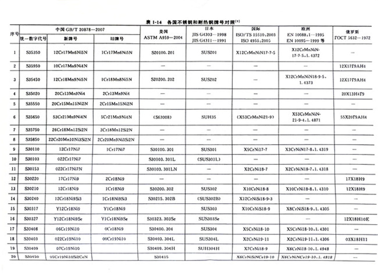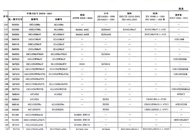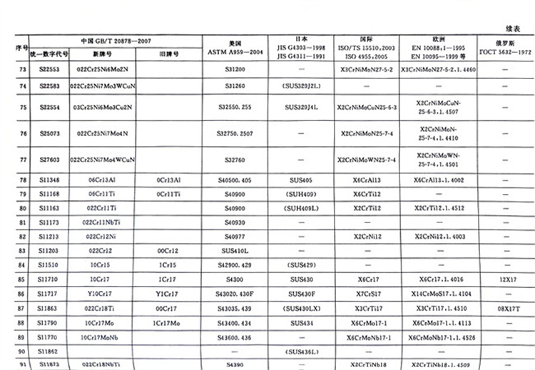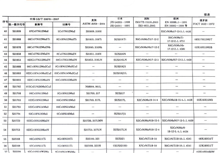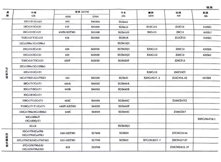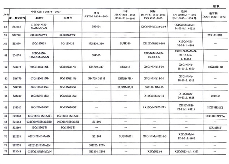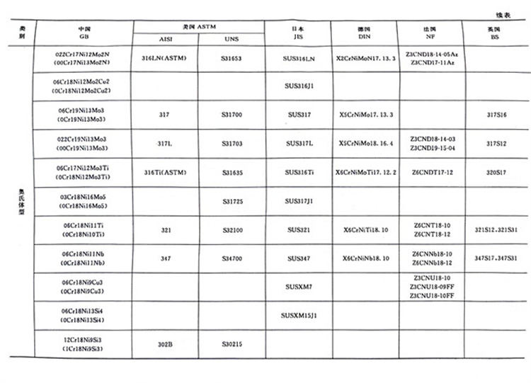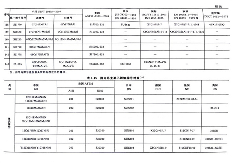 國內外主要不銹鋼牌號對照表