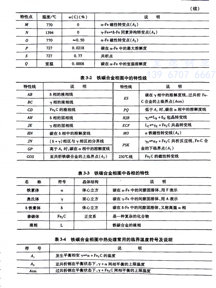 為了便(bian)于查閱應用(yong),現將鐵碳合(he)金相(xiang)圖中各點、線(xian)及其各種相(xiang)的特性(xing)分別列(lie)于表(biao)3-1~表(biao)3-4。