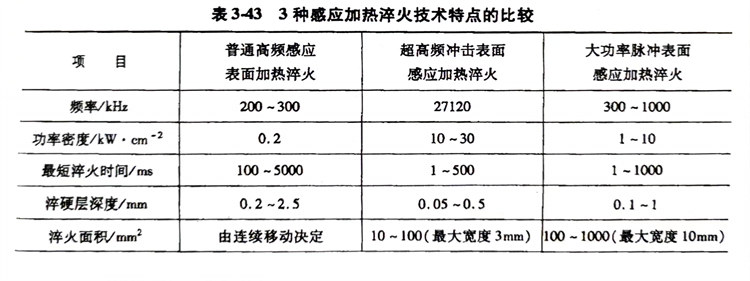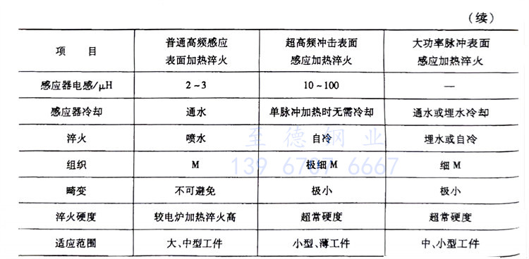高(gao)(gao)頻感(gan)(gan)(gan)應(ying)加熱(re)向著(zhu)超高(gao)(gao)沖擊淬火(huo)和(he)大功(gong)率(lv)脈沖感(gan)(gan)(gan)應(ying)加熱(re)淬火(huo)的方向發展。表3-43是(shi)普通高(gao)(gao)頻感(gan)(gan)(gan)應(ying)表面加熱(re)淬火(huo)、超高(gao)(gao)頻沖擊表面感(gan)(gan)(gan)應(ying)加熱(re)淬火(huo)、大功(gong)率(lv)脈沖表面感(gan)(gan)(gan)應(ying)加熱(re)淬火(huo)的技術(shu)特點比較。
