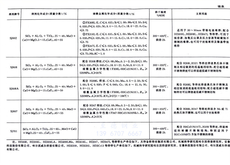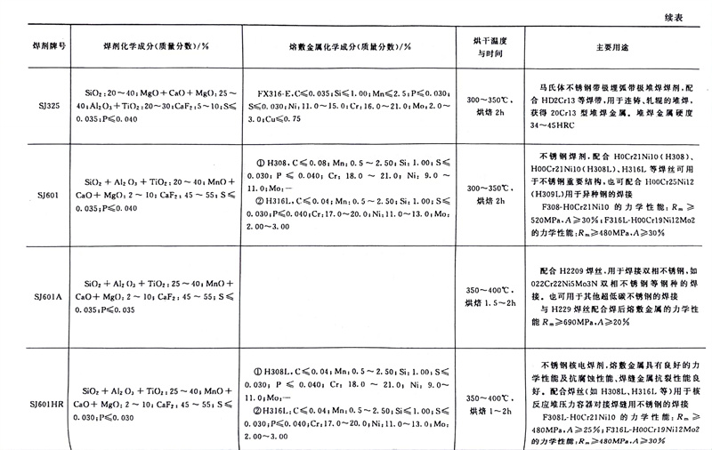 不(bu)銹鋼埋(mai)弧(hu)焊用熔煉焊劑(ji)的牌號(hao)和主(zhu)要化學成分(fen)及(ji)主(zhu)要用途見表2-45。