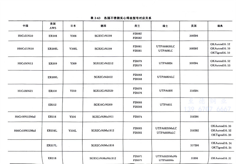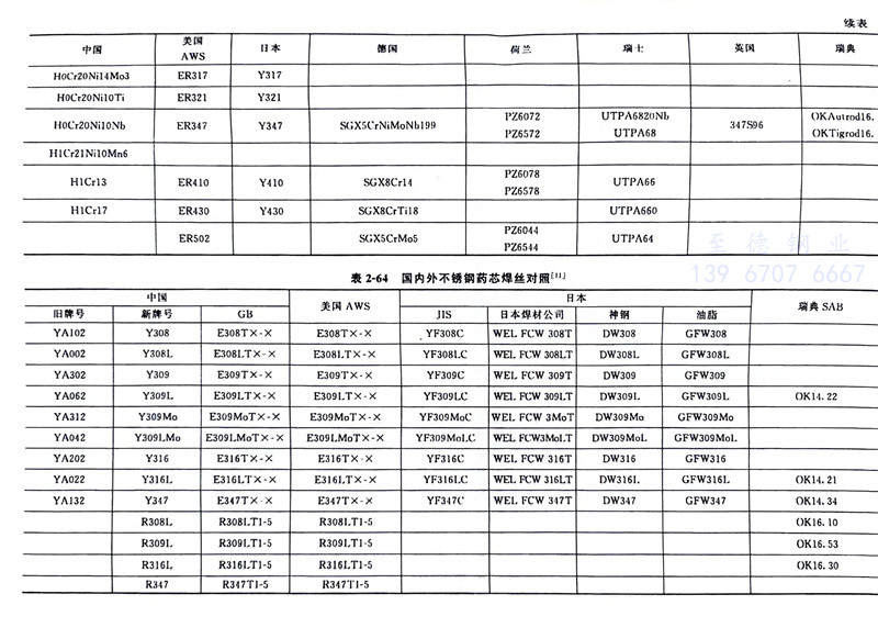 各國不銹鋼實心焊絲型號對應(ying)關系(xi)見(jian)表2-63,各國藥芯焊絲型號對應(ying)關系(xi)見(jian)表2-64。