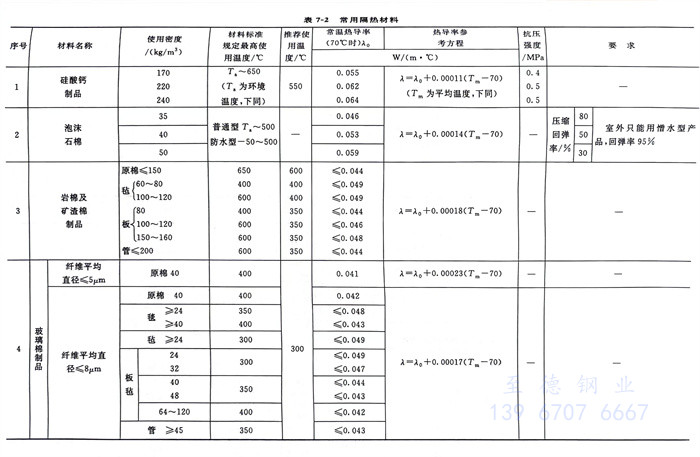 ①. 保溫材料在平均溫度低于(yu)或(huo)等于(yu)350℃時,其(qi)熱導率不得(de)大(da)于(yu)0.1212W/(m·℃)),保冷材料在平均溫度低于(yu)27℃時,其(qi)熱導率不應大(da)于(yu)0.064WW/(m·